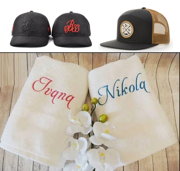BORDADOS SOBRE TOALLAS, GORRAS